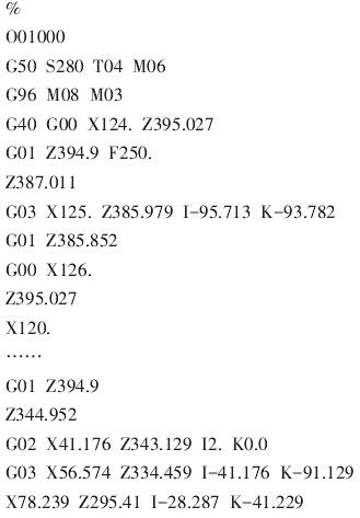 下面是該零件進行后置處理后生成的部分程序代碼: